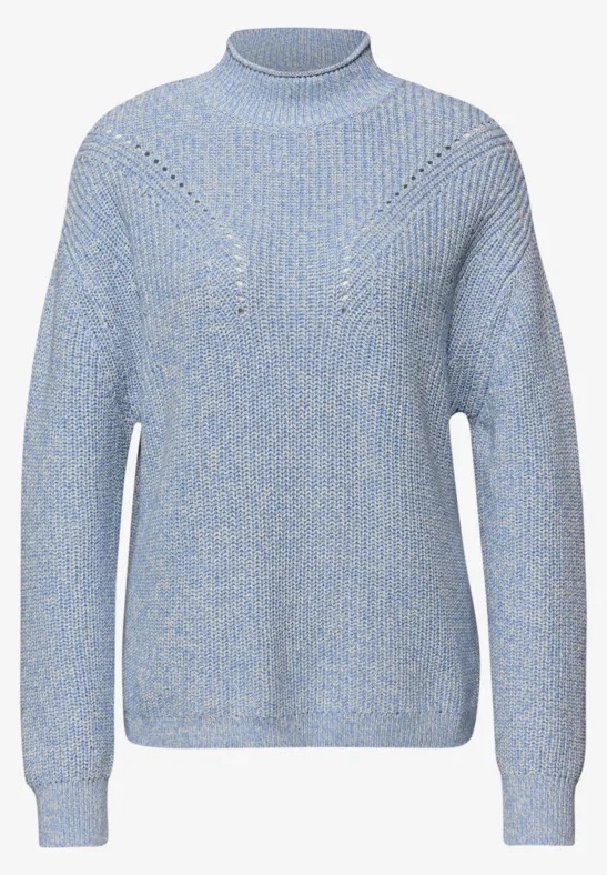 Gemêleerde trui van Street One in een mouline-look met lange mouwen, opengewerkte details, opstaande kraag en ribgebreide boorden. Materiaal: Katoen 100%