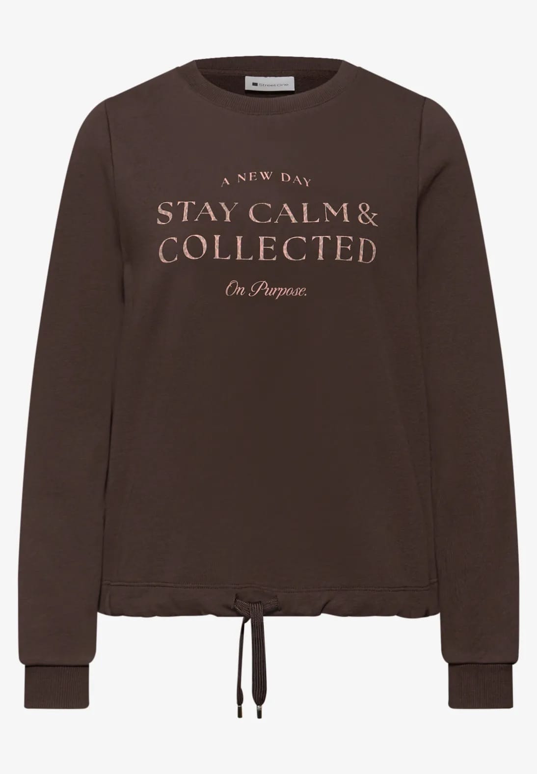 Sweater van Street One met lange mouwen, ronde hals, tekstprint op de voorzijde en een elastische tailleband voorzien van trekkoord. Materiaal: Katoen 85%| polyester 15%