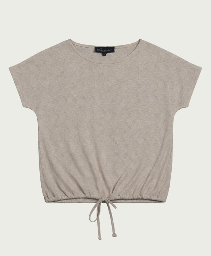 Shirt van Elvira in zig-zag dessin met korte mouwen, ronde hals en trekkoord in de zoom.