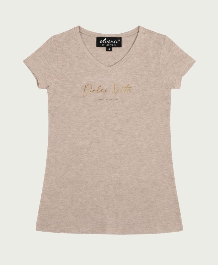 T-shirt van Elvira met korte mouwen, V-hals en tekstprint op de voorzijde.