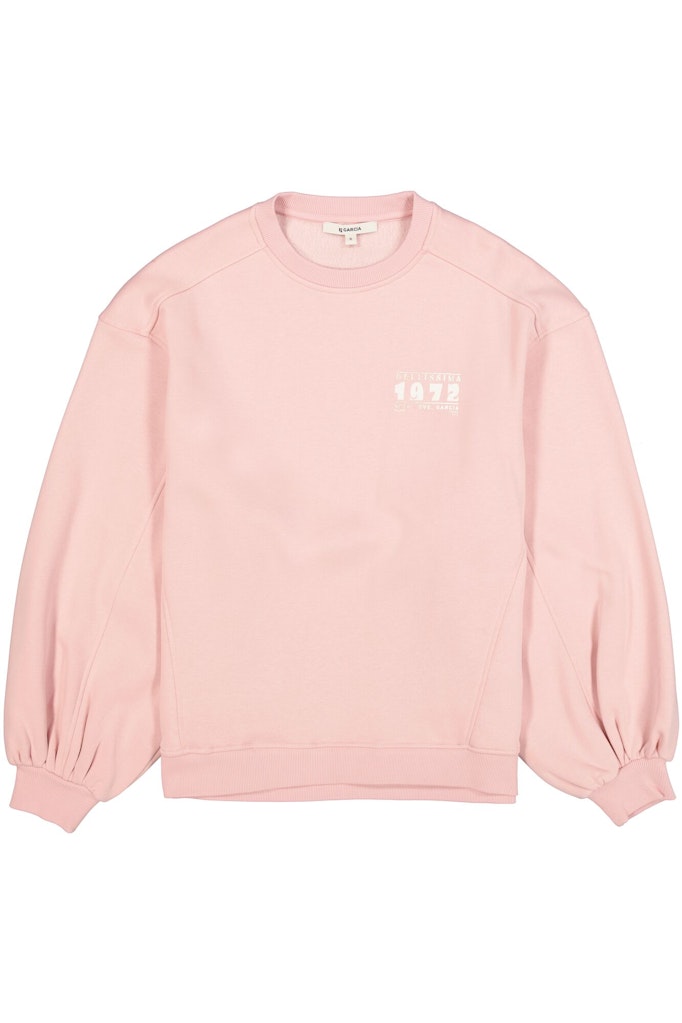 Sweater van Garcia met lange pofmouwen, verlaagde schoudernaden, ronde hals, opdruk op de linkerborst en ribboorden.