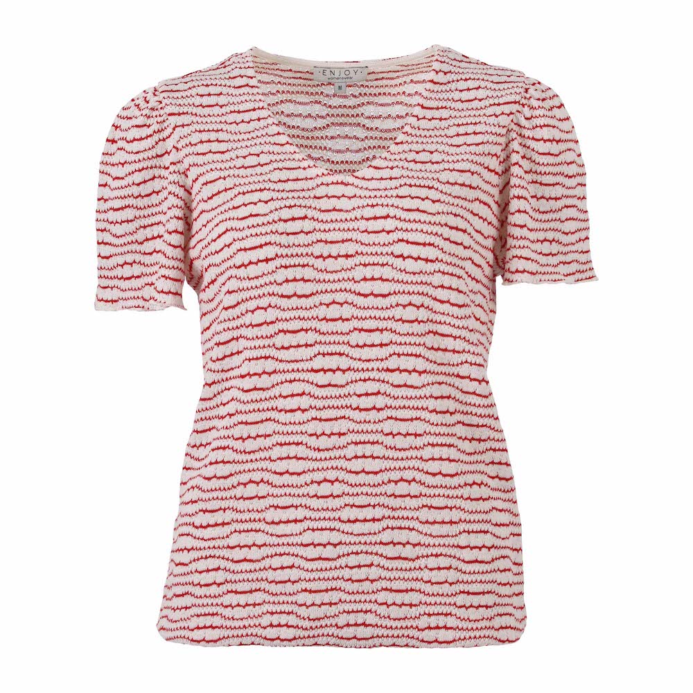 Blouson van Enjoy in een streepachtige print met een V-hals, korte pofmouwen en een elastische zoom. Materiaal: Polyester 60%| katoen 40%