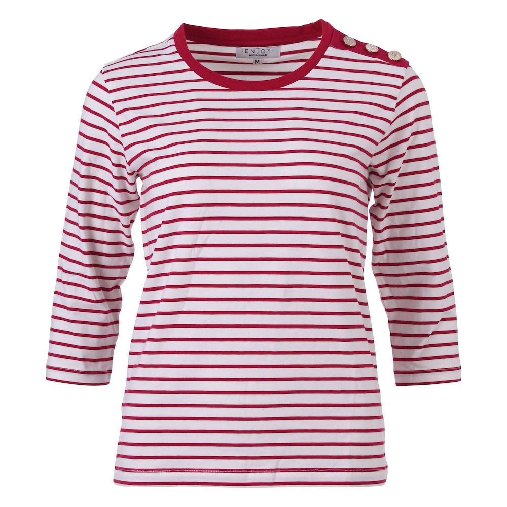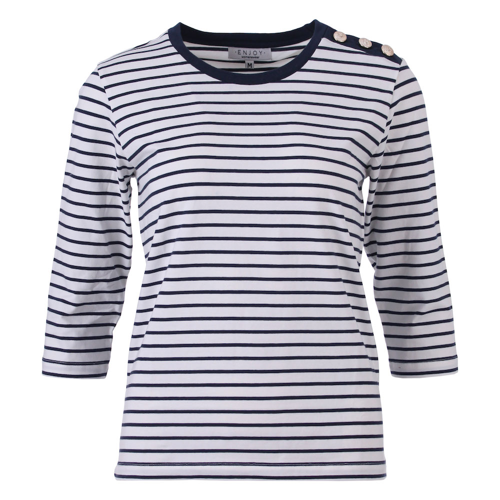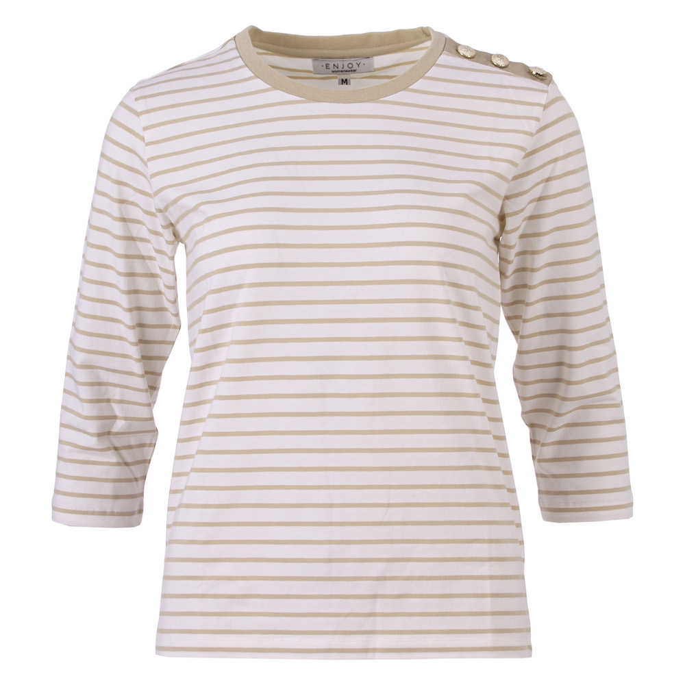 Gestreept shirt van Enjoy met driekwart mouwen, ronde hals en een knoopdetail op de linkerschouder.