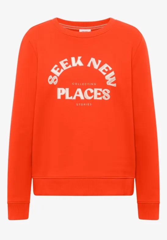 Sweater van Cecil met lange mouwen, ronde hals, geborduurde tekstprint op de borst en ribgebreide boorden. Materiaal: Katoen 100%