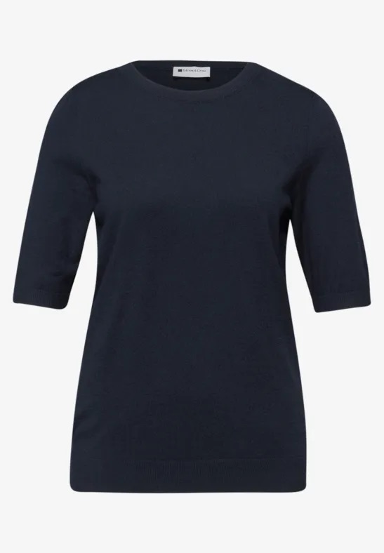 Fijn gebreide trui van Street One met korte pofmouwen, ronde hals en ribgebreide boorden. Materiaal: Polyester 30%| acryl 27%| polyamide 23%| viscose 20%