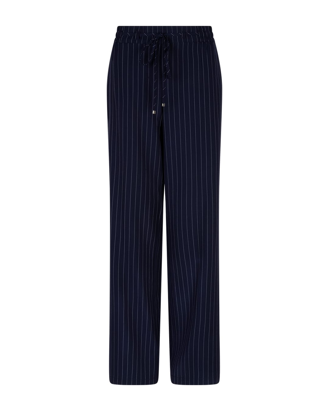Krijtstreep broek van Red Button met wijde pijpen, steekzakken, twee paspelzakken aan de achterzijde en een elastische tailleband voorzien van trekkoord.