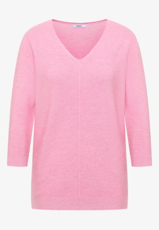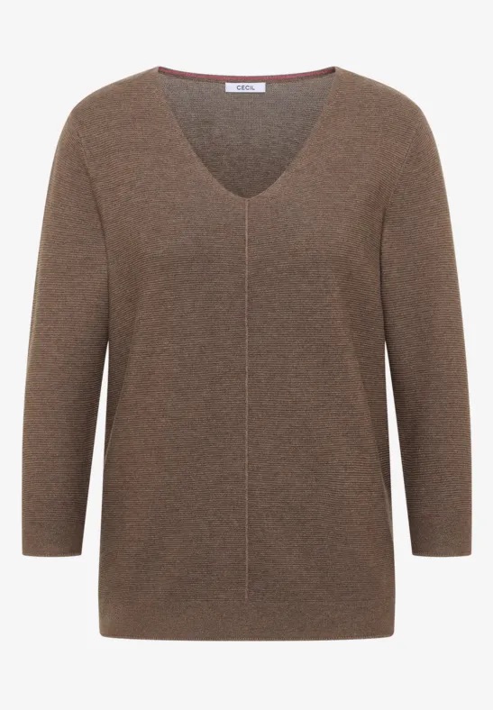 Trui van Cecil in een structuur dessin met driekwart mouwen, V-hals, decoratieve middennaad en ribgebreide boorden. Materiaal: Katoen 60%| viscose 40%