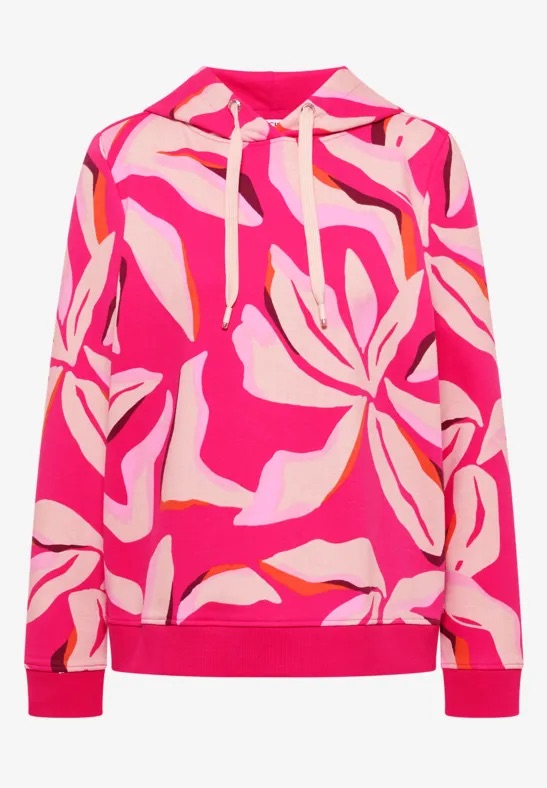 Hoodie van Cecil in een bloemen dessin met lange mouwen, capuchon voorzien van trekkoord en ribgebreide boorden. Materiaal: Katoen 65%| polyester 35%
