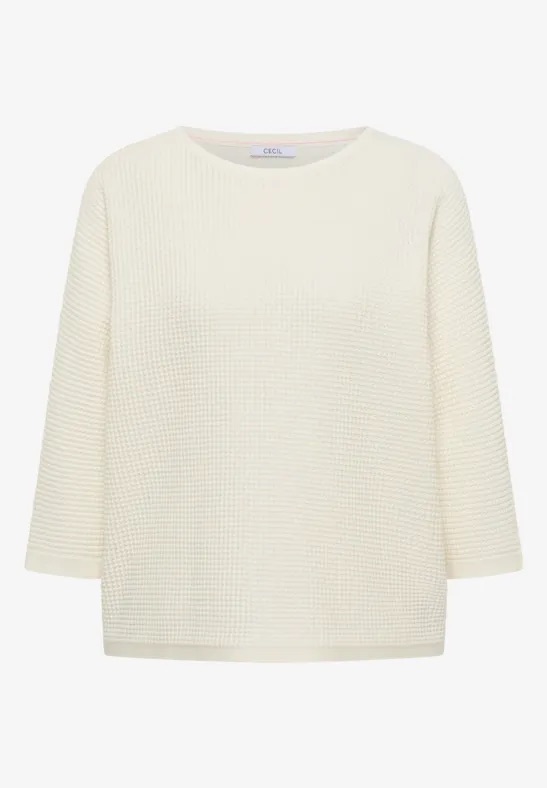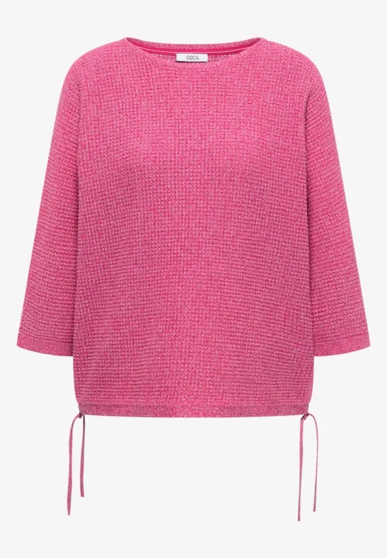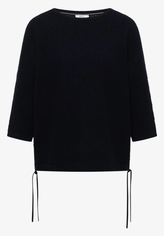 Trui van Cecil in een structuur dessin met driekwart mouwen, boothals en een trekkoord in de zijnaden. Materiaal: Katoen 100%
