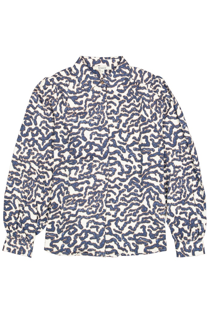 Dobby geweven blouse van Garcia in een all-over dessin met lange mouwen, kraag en een verborgen knoopsluiting. Materiaal: Viscose 100%