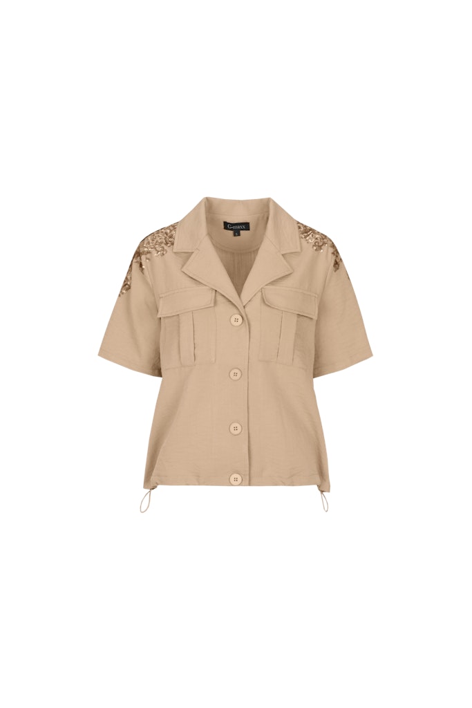Blouse van G-maxx met korte mouwen, geborduurd detail op de schouders, reverskraag, knoopsluiting, opgestikte klepzakken en een drawstring in de zoom.