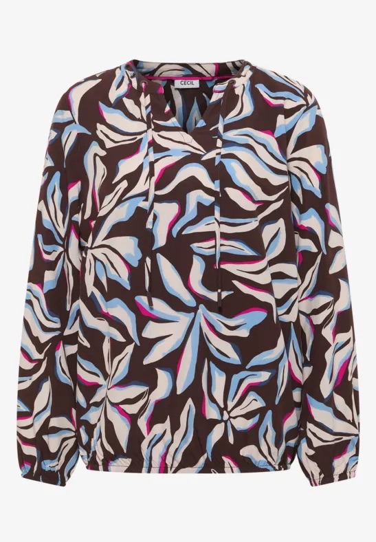 Blouse van Cecil in een all-over dessin met lange mouwen, V-hals voorzien van strikkoordjes en een elastische zoom. Materiaal: Viscose 100%