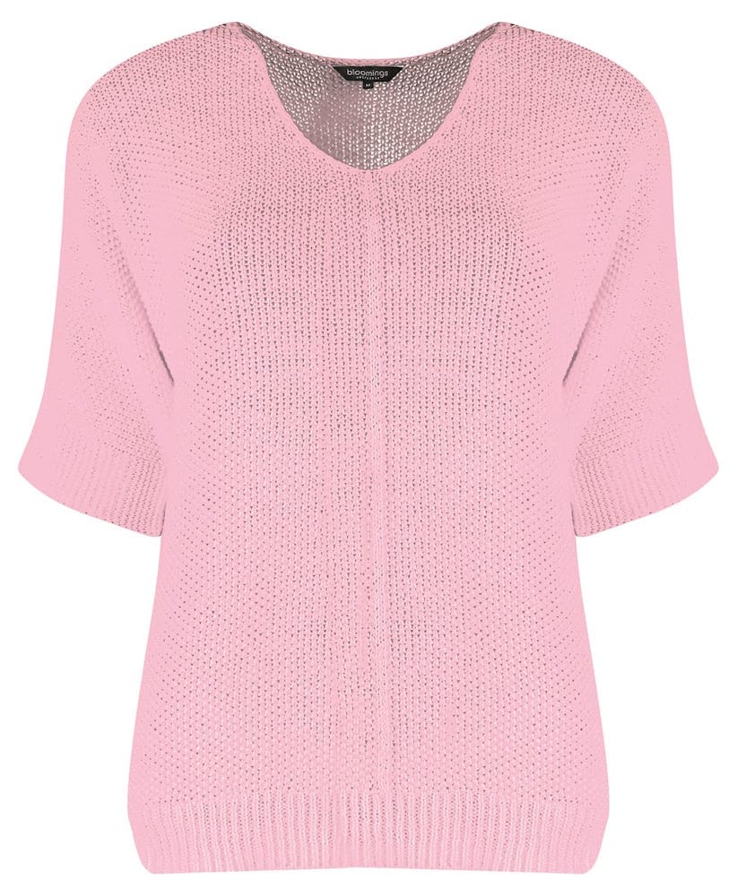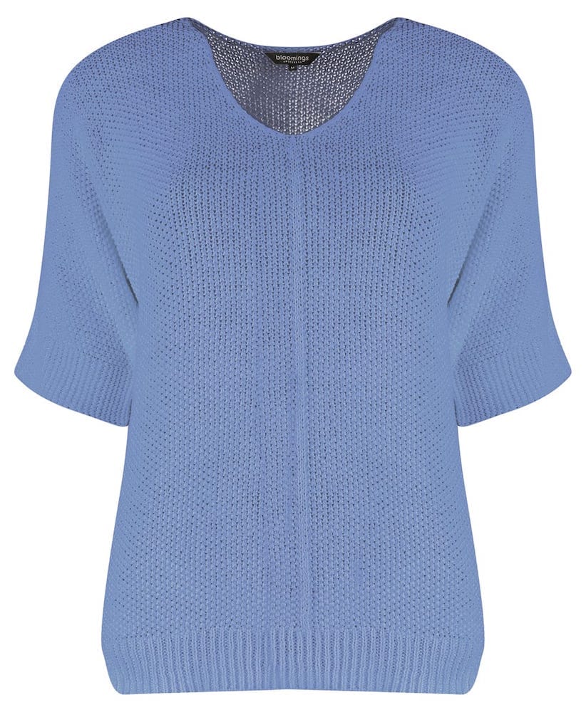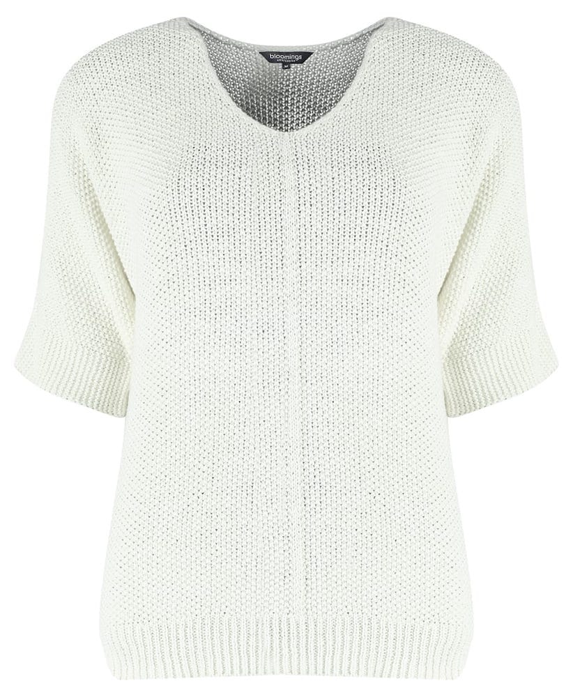 Trui van Bloomings in een structuur dessin met korte mouwen, V-hals, decoratieve middennaad en ribgebreide boorden. Materiaal: Katoen 60%| acryl 40%