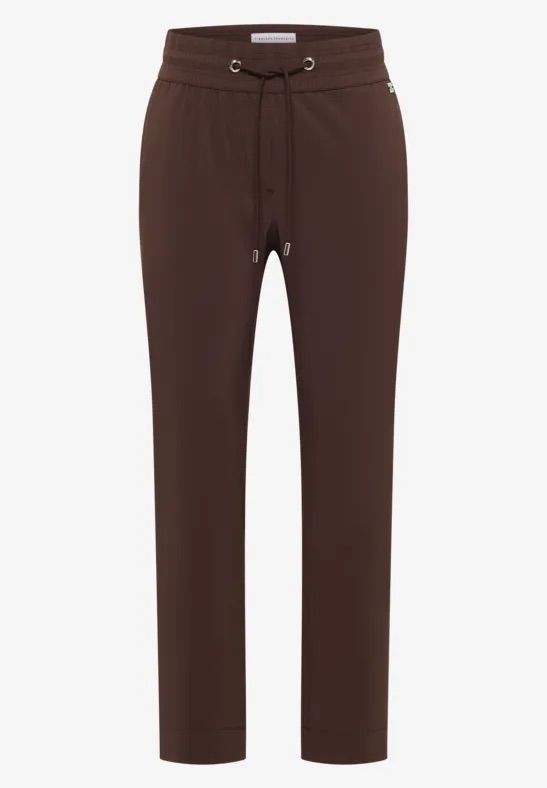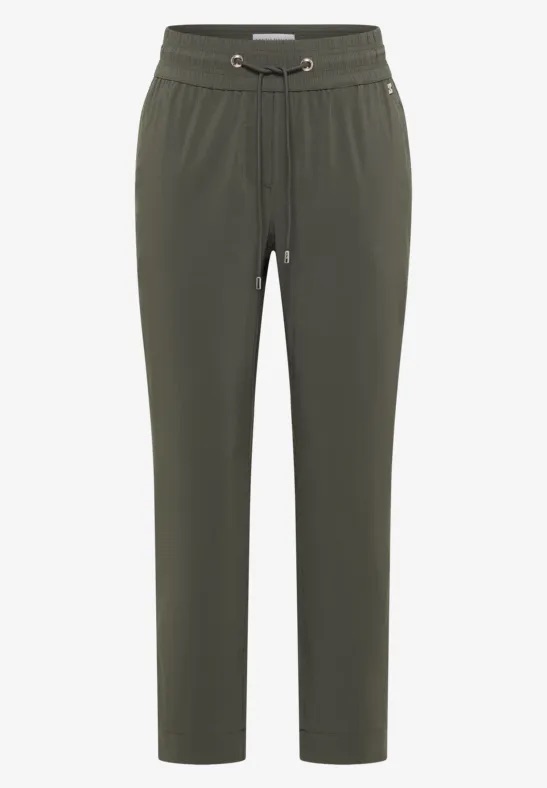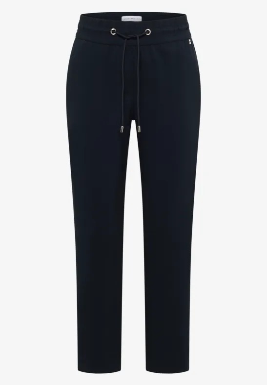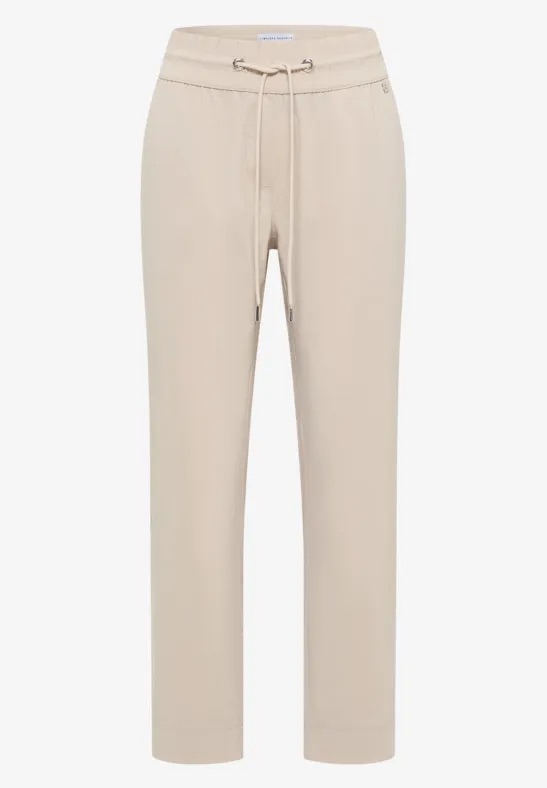 Jersey slim legs broek van Cecil met steekzakken, twee paspelzakken aan de achterzijde en een elastische tailleband voorzien van trekkoord.