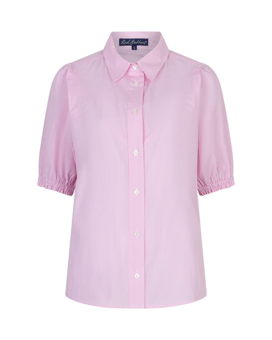 Gestreepte blouse van Red Button met korte subtiele pofmouwen voorzien van elastische boorden, kraag en knoopsluiting. Materiaal: Katoen 100%