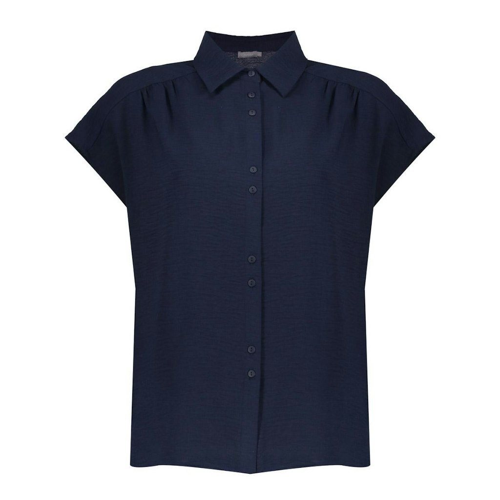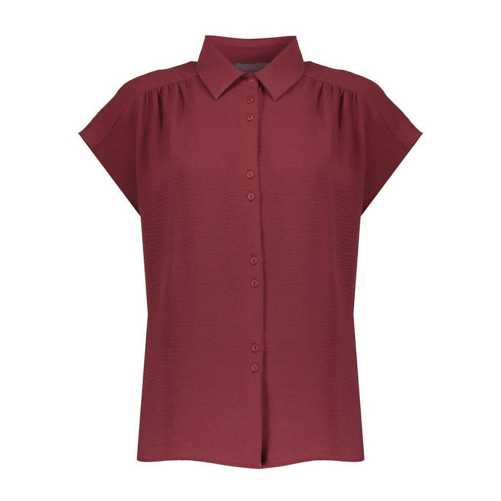 Blouse van Geisha in een crinkle dessin met korte aangeknipte mouwen, kraag en een knoopsluiting. Materiaal: Polyester 100%