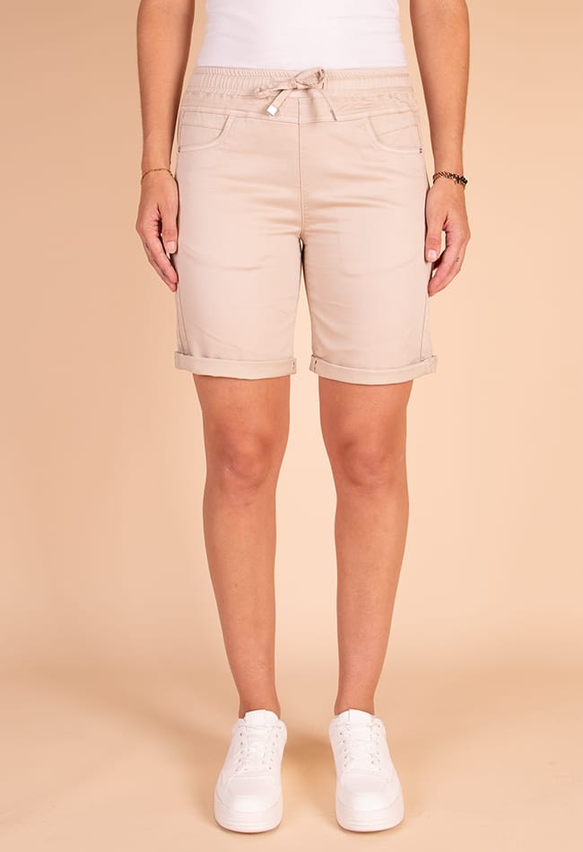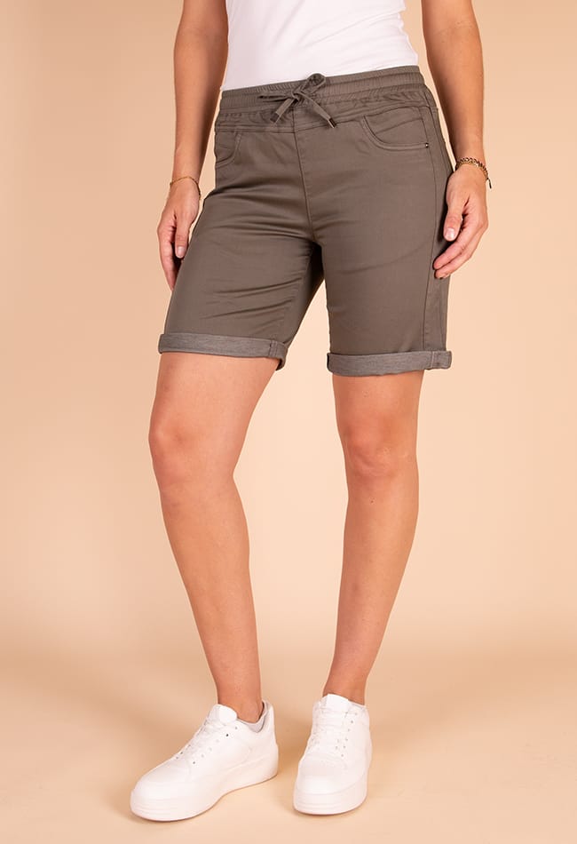 4-pocket short van Gafair met een elastische tailleband voorzien van trekkoord en omgeslagen zoom. Materiaal: Katoen 81%| polyester 18%| elastan 1%