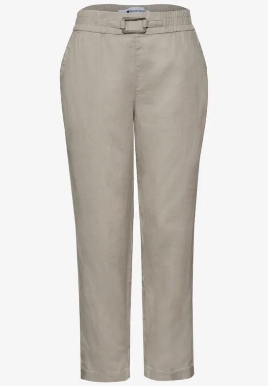 Slim legs linnen broek van Street One met steekzakken, gespdetail, twee paspelzakken en een elastische tailleband aan de achterzijde. Materiaal: Linnen 100%