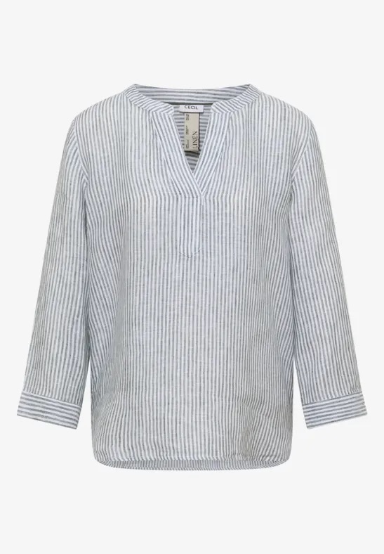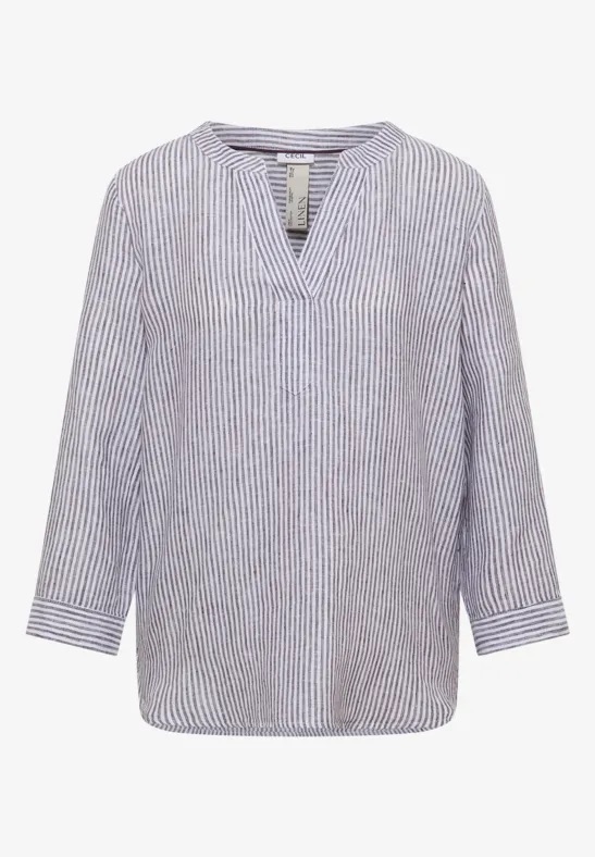 Gestreepte linnen blouse van Cecil met driekwart mouwen en een gespleten hals. Materiaal: Linnen 100%