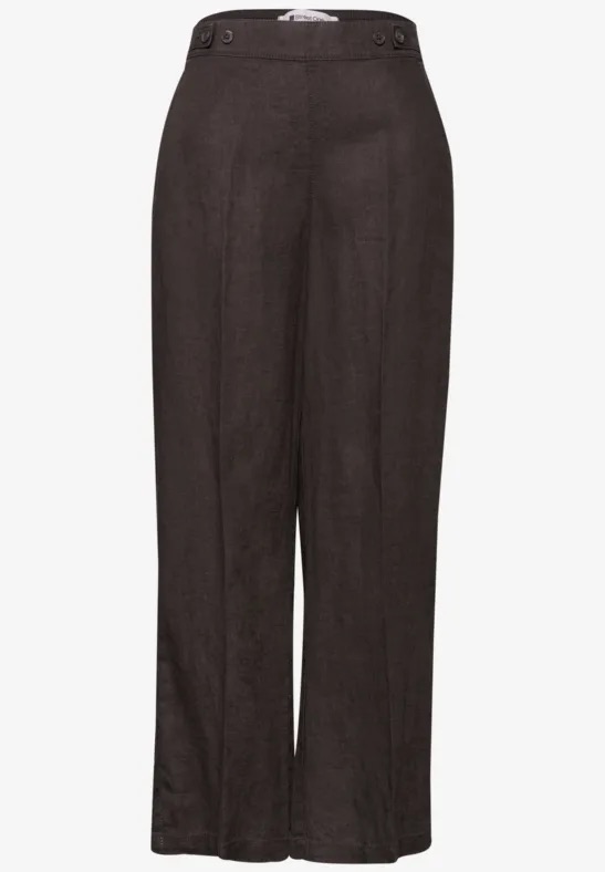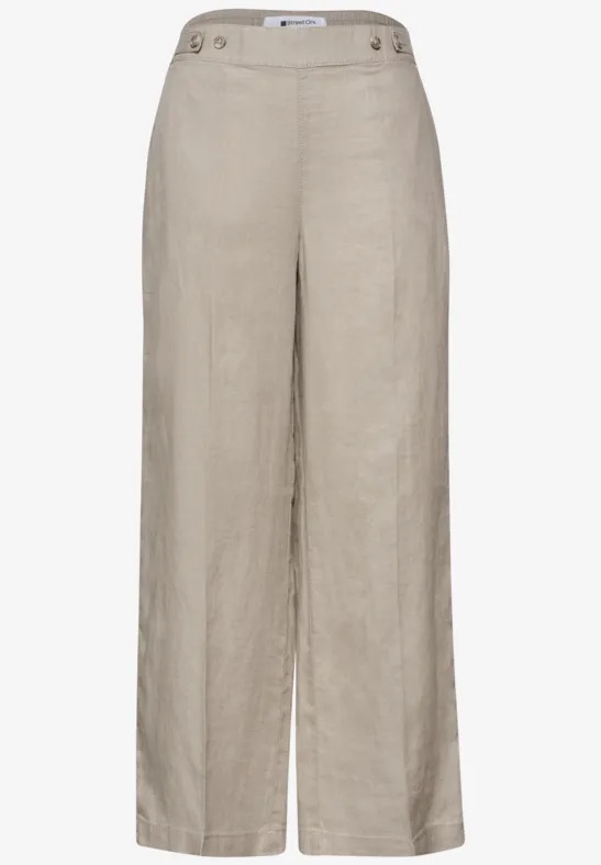 High waist linnen broek van Street One met wijde pijpen, steekzakken, twee paspelzakken aan de achterzijde en een elastische tailleband voorzien van knoopdetail.