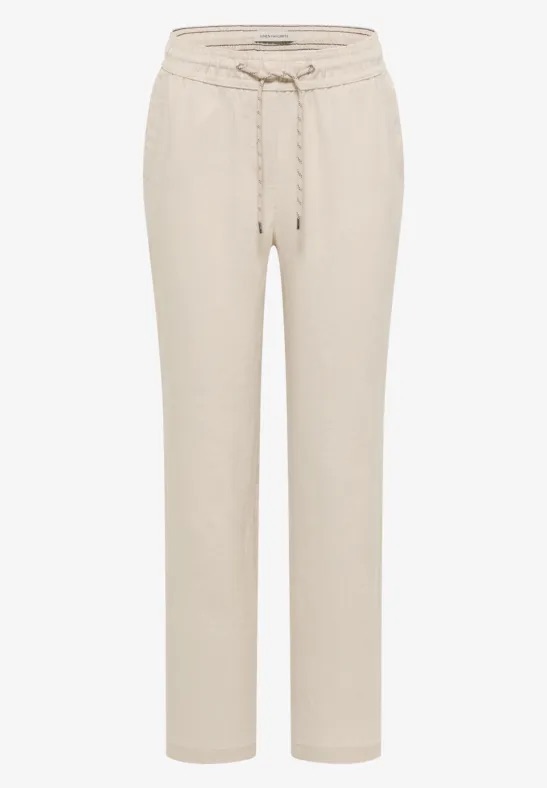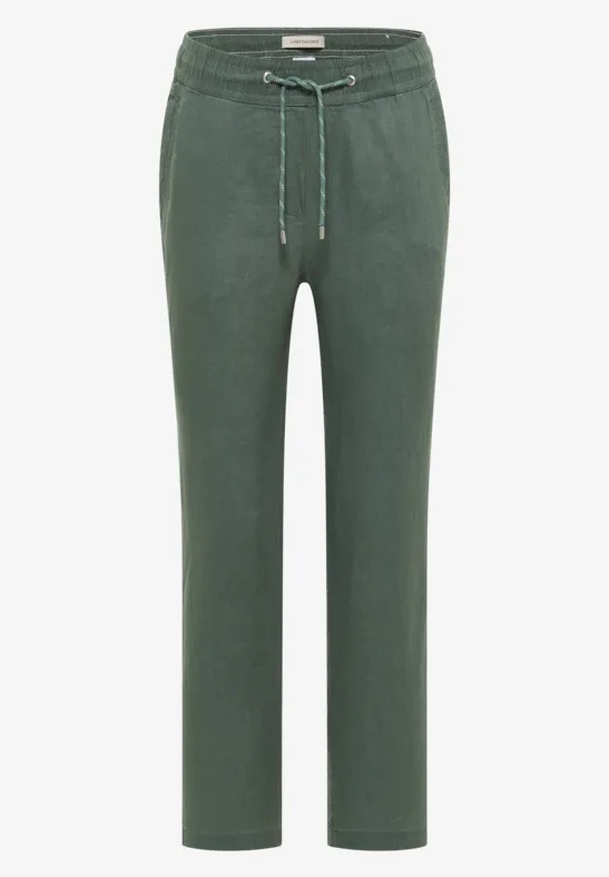 Enkellange slim legs broek van Cecil met steekzakken, twee paspelzakken aan de achterzijde en een elastische tailleband voorzien van trekkoord. Materiaal: Linnen 100%