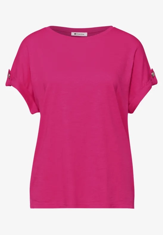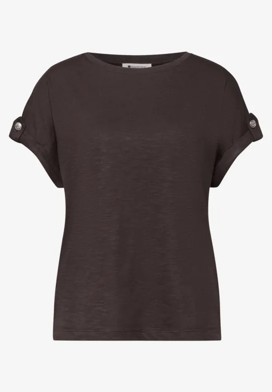 T-shirt van Street One met een ronde hals en korte aangeknipte mouwen voorzien van omslag met knoopdetail. Materiaal: Katoen 50%| modal 50%