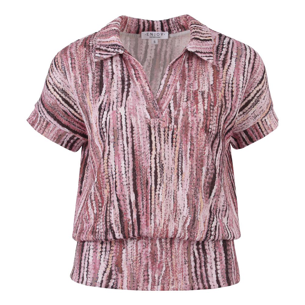 Shirt van Enjoy in een all-over met korte aangeknipte mouwen voorzien van omslag, kraag, V-hals en een boord aan de onderzijde.