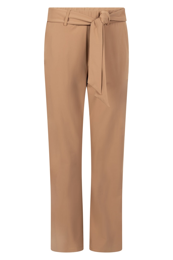 Broek van Zoso in travel kwaliteit met rechte pijpen, steekzakken, klepzakken aan de achterzijde en een elastische tailleband voorzien van strikceintuur. Materiaal: Polyamide 80%| elastan 20%