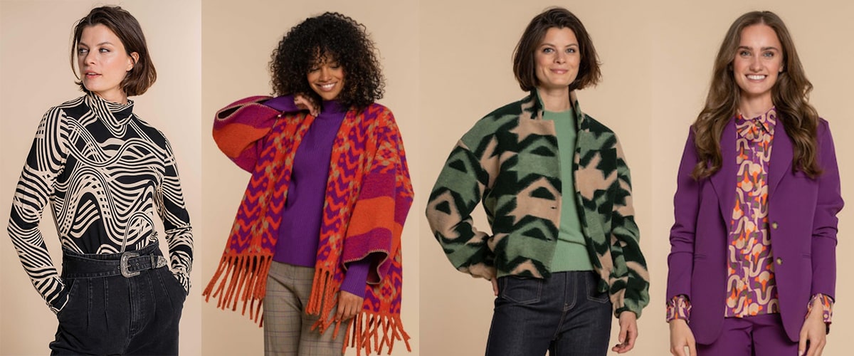 Een kijkje achter de schermen, een blik op de nieuwe Fall/Winter '23 collectie 'Arctic Grooves' van Geisha. Naar eigen zeggen: 'De perfecte combinatie terug tussen vintage en futurisme.' Dit betekent jersey, twill en corduroy geweven co-ord set, zachte gebreide truien, oversized poncho's, boxy teddy gilets met futuristische details en comfortabele winterjassen. Het kleurenpalet bevat heldere kleuren waarbij paars, aubergine en evergreen de boventoon voeren. Natuurlijk komen ook meerdere artistieke allover prints voorbij. En niet te vergeten details.. tapes, splits, structuur en onafgewerkte broekspijpen. It’s all about the details.