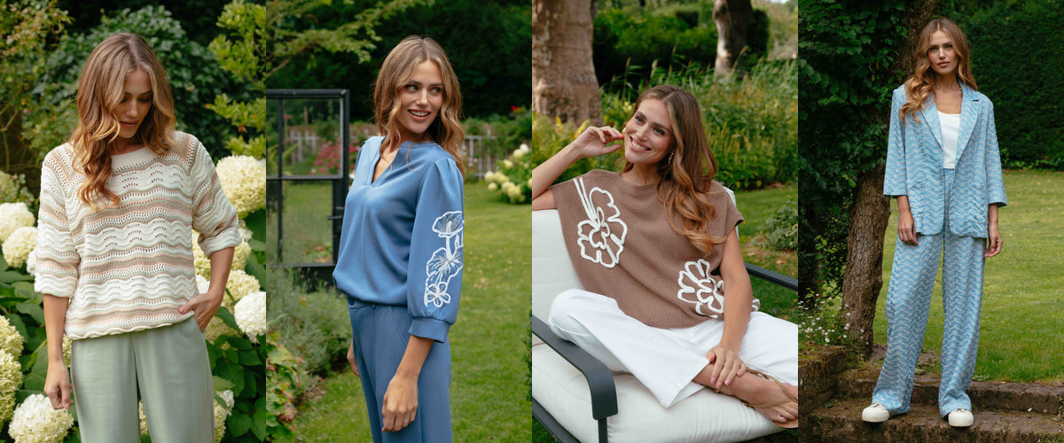 In deze lente- en zomercollectie zien we een prachtig kleurenpalet dat helemaal aansluit bij de trends van nu. Denk aan zachte natuurtinten zoals zand, beige en off-white, gecombineerd met frisse pastels en subtiele kleuraccenten. Deze tinten zorgen voor een rustige, luxe uitstraling en laten zich eindeloos combineren.