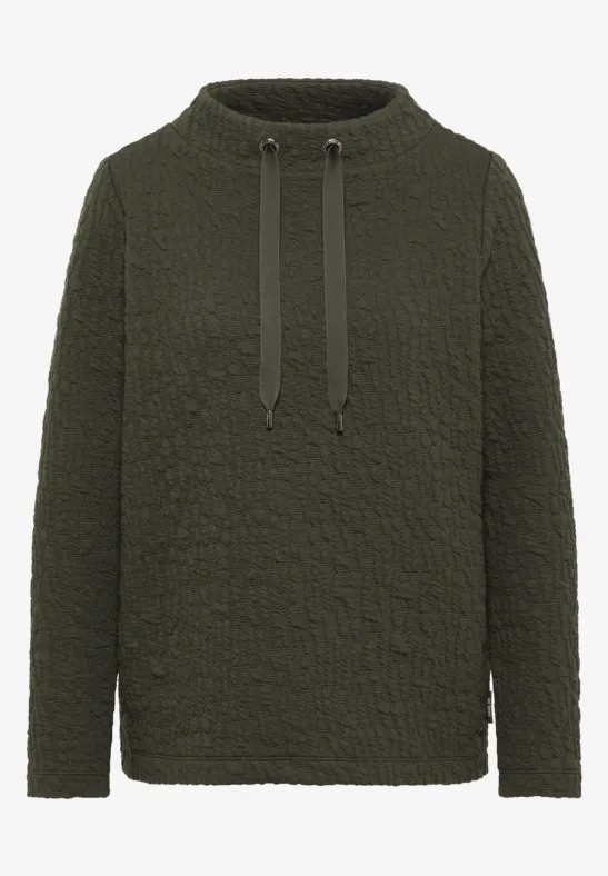 Shirt van Cecil in een structuur dessin met lange mouwen en een opstaande kraag voorzien van trekkoord. Materiaal: Katoen 78%| polyester 20%| elastan 2%