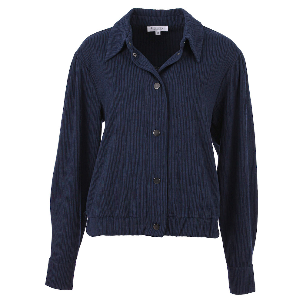 Jacket van Enjoy in een structuur dessin met lange mouwen, kraag, drukknoopsluiting en een elastische zoom. Materiaal: Polyester 65%| viscose 32%| elastan 3%