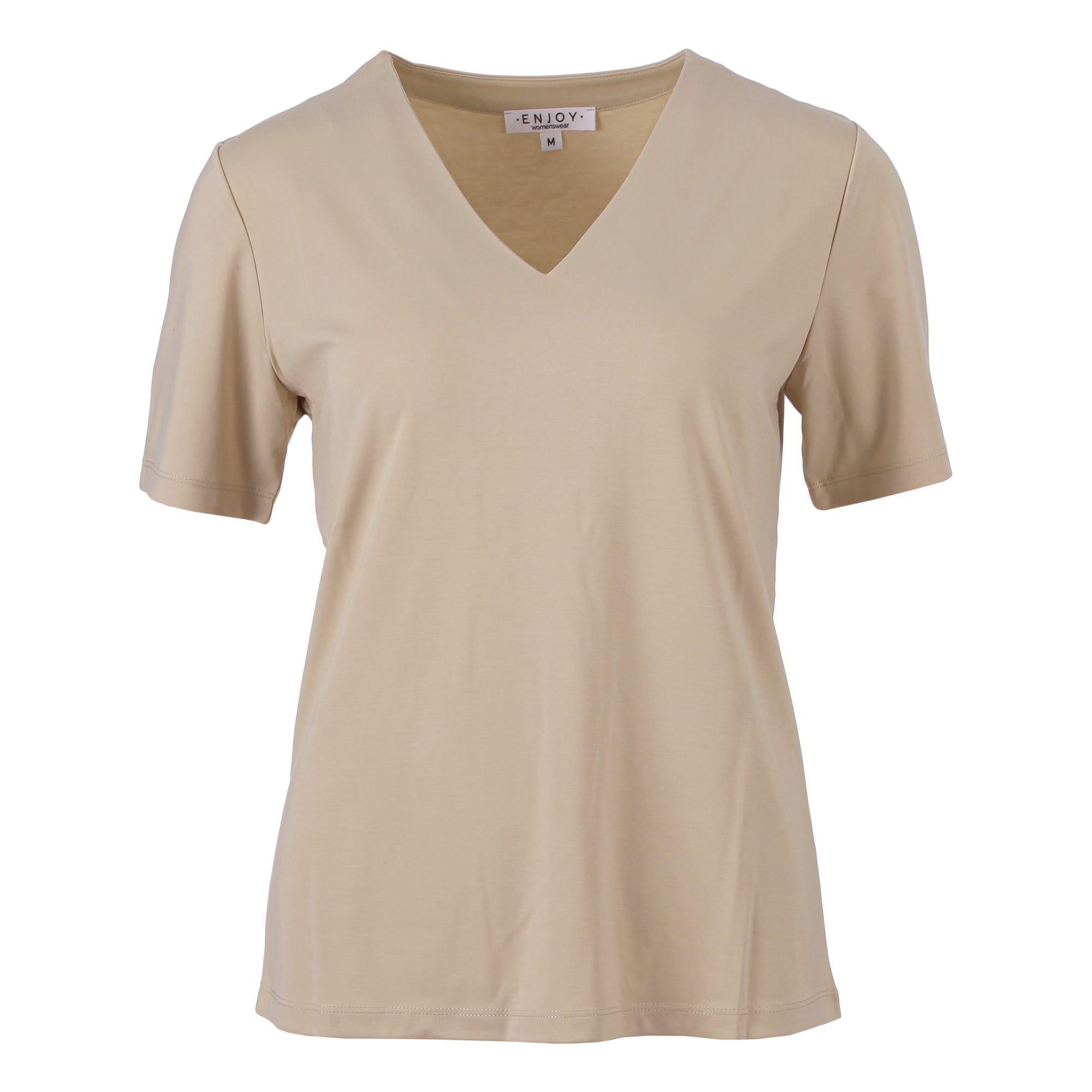 T-shirt van Enjoy met korte mouwen en een V-hals. Materiaal: Rayon 60%| nylon 31%| spandex 9%