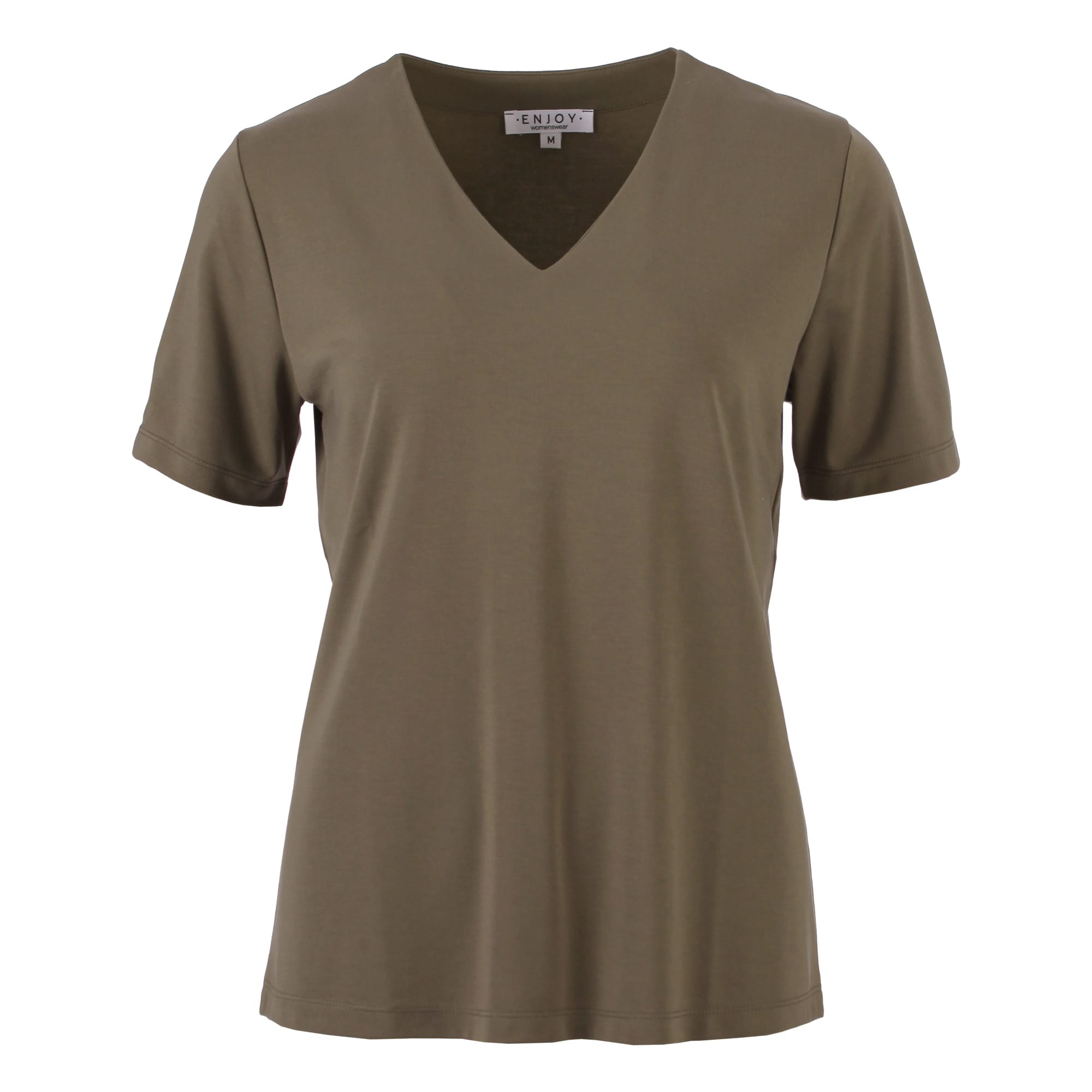 T-shirt van Enjoy met korte mouwen en een V-hals. Materiaal: Rayon 60%| nylon 31%| spandex 9%