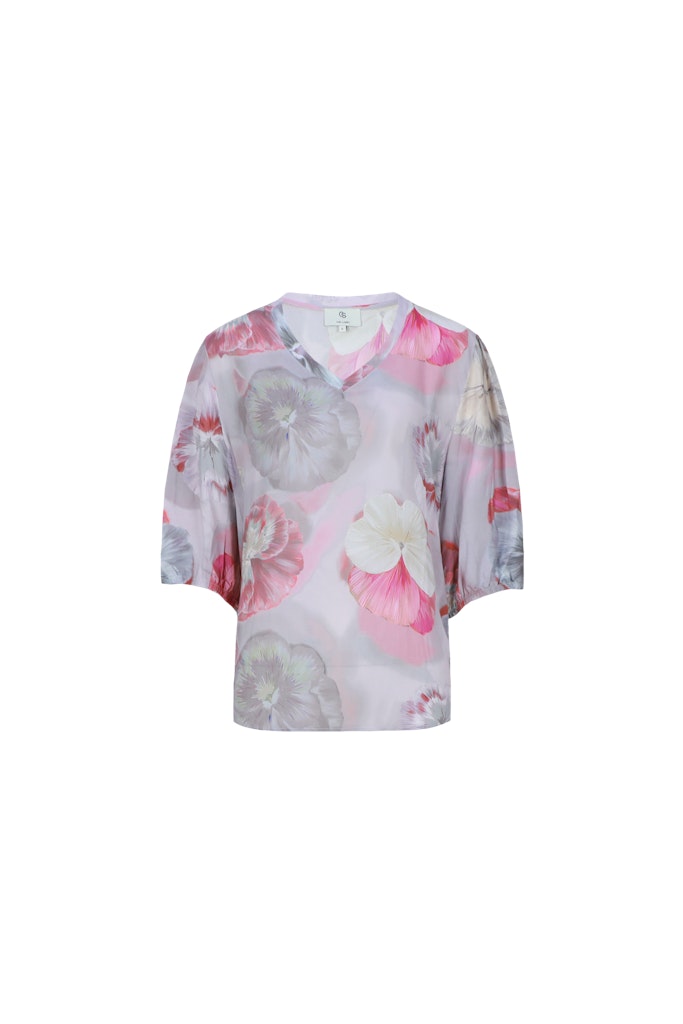 Luchtige top van C&S the Label in een bloemendessin met halflange mouwen voorzien van elastische boorden en V-hals. Materiaal: Viscose 100%