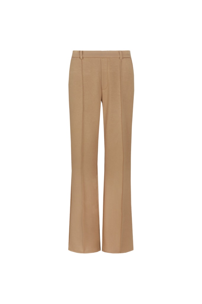 Broek van C&S the Label met rechte pijpen, gestikte vouwnaden aan de voorzijde, elastische tailleband, riemlussen, steekzakken en paspelzakken aan de achterzijde. Materiaal: Rayon 55%| polyester 40%| elastan 5%