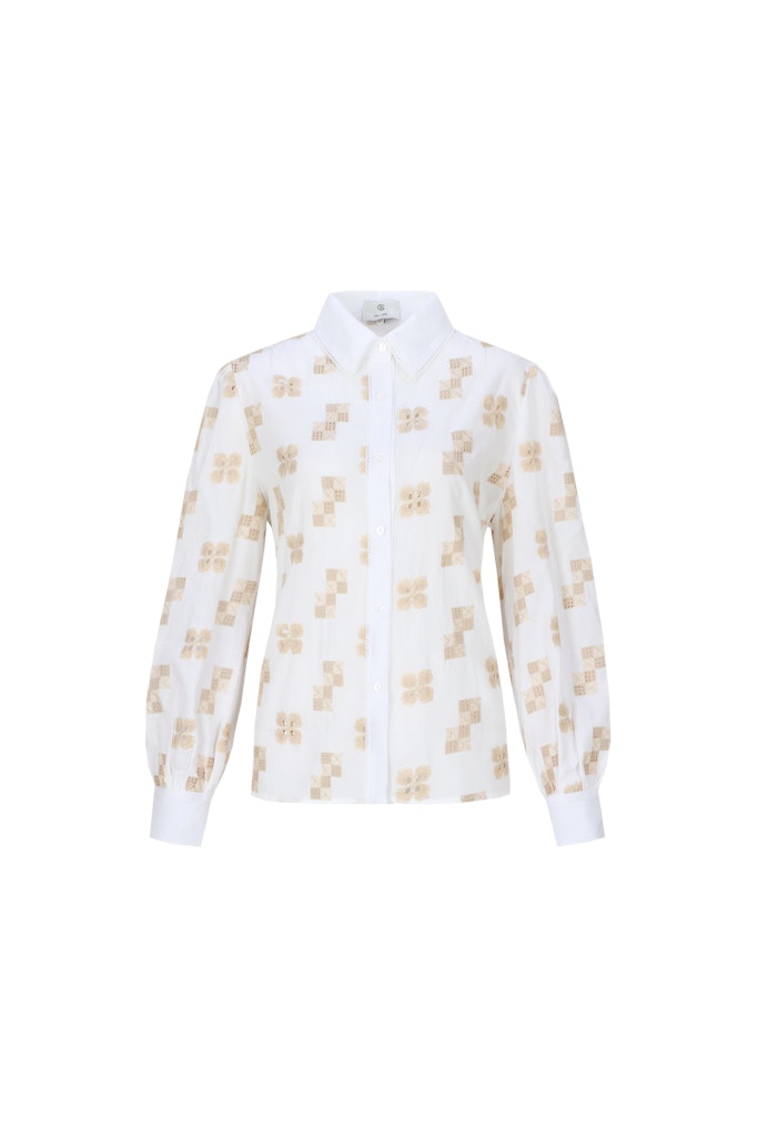 Blouse van C&S the Label in een all-over dessin met lange subtiele pofmouwen, klassieke kraag en knoopsluiting. Materiaal: Katoen 100%