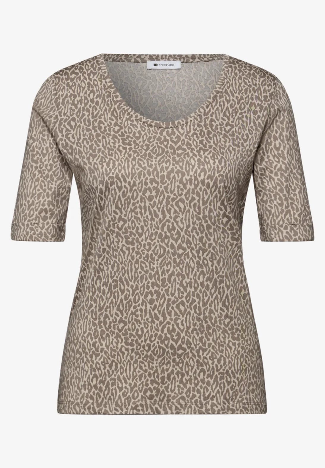 Shirt van Street One in een animal dessin met korte mouwen en een afgeronde V-hals. Materiaal: Katoen 50%| modal 50%
