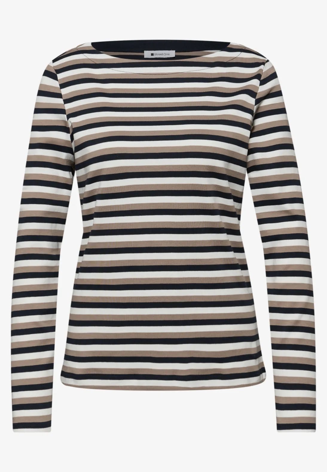 Gestreept shirt van Street One met lange mouwen en boothals. Materiaal: Katoen 100%