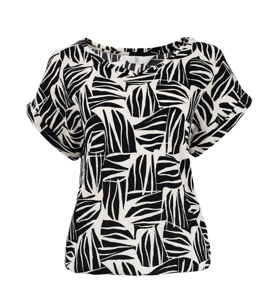 Shirt van N.E.D. in een all-over dessin met korte aangeknipte mouwen voorzien van omslag, V-hals en een elastische zoom. Materiaal: Polyester 99%| elastan 1%
