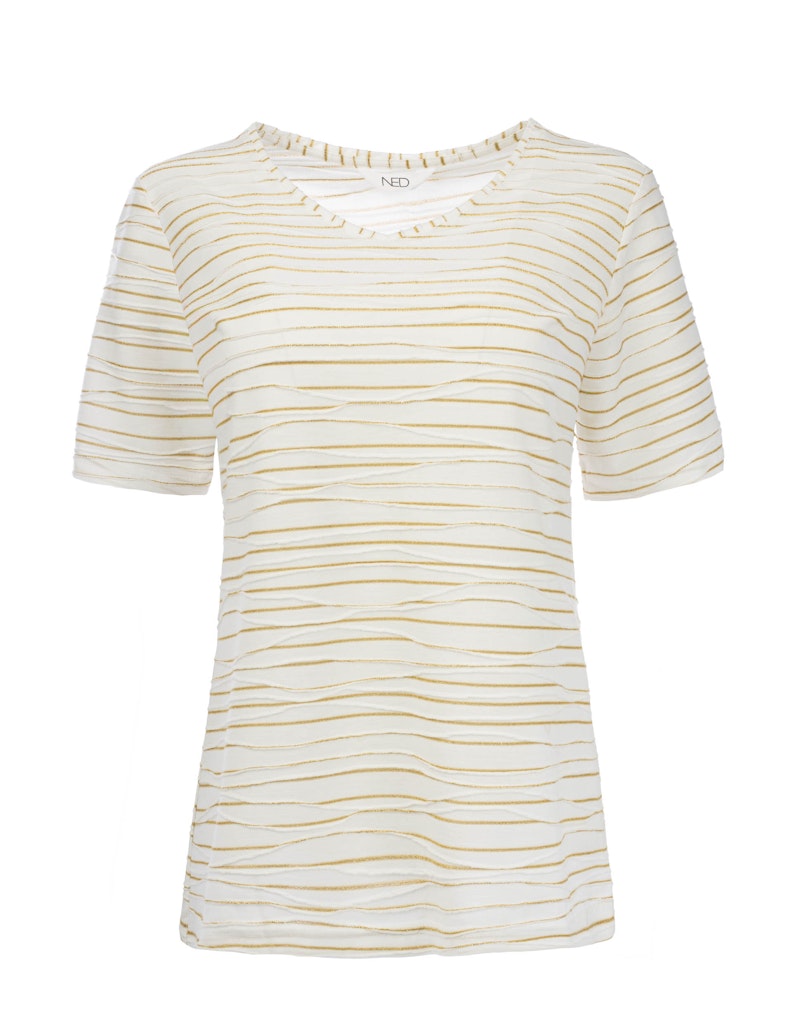 Shirt van N.E.D. in een golden wave patroon met korte mouwen en een V-hals. Materiaal: Rayon 95%| metal 5%