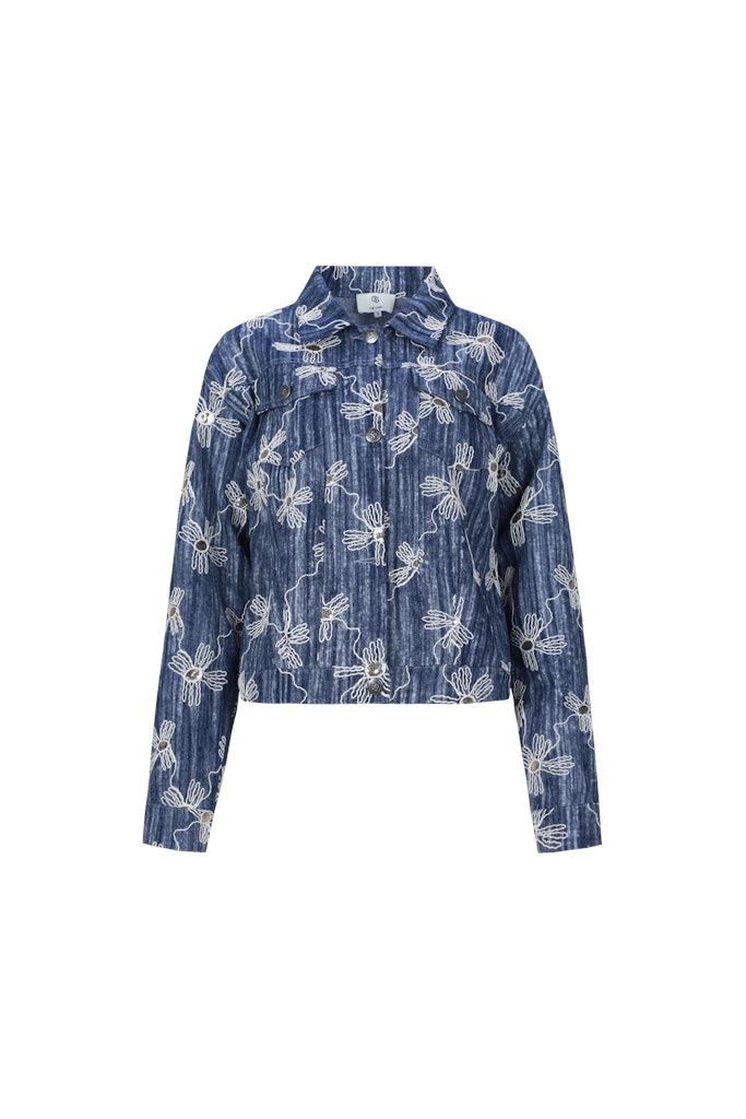Jacket van C&S The Label in een denim-look met een geborduurd dessin, lange mouwen, kraag, knoopsluiting en twee klepzakken op de borst.