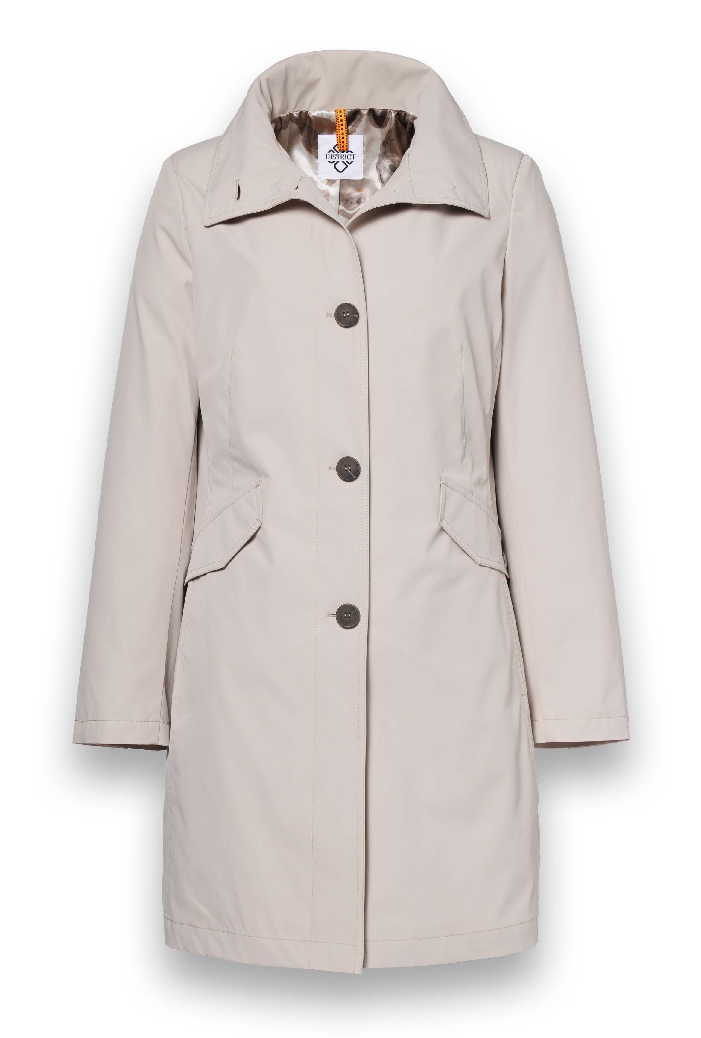 Jas van District met en knoopsluiting, opstaande kraag, twee klepzakken en een split aan de achterzijde.