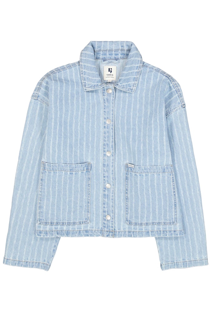 Gestreept denim jacket van Garcia met lange mouwen, kraag, drukknoopsluiting en twee opgestikte zakken. Materiaal: Katoen 100%