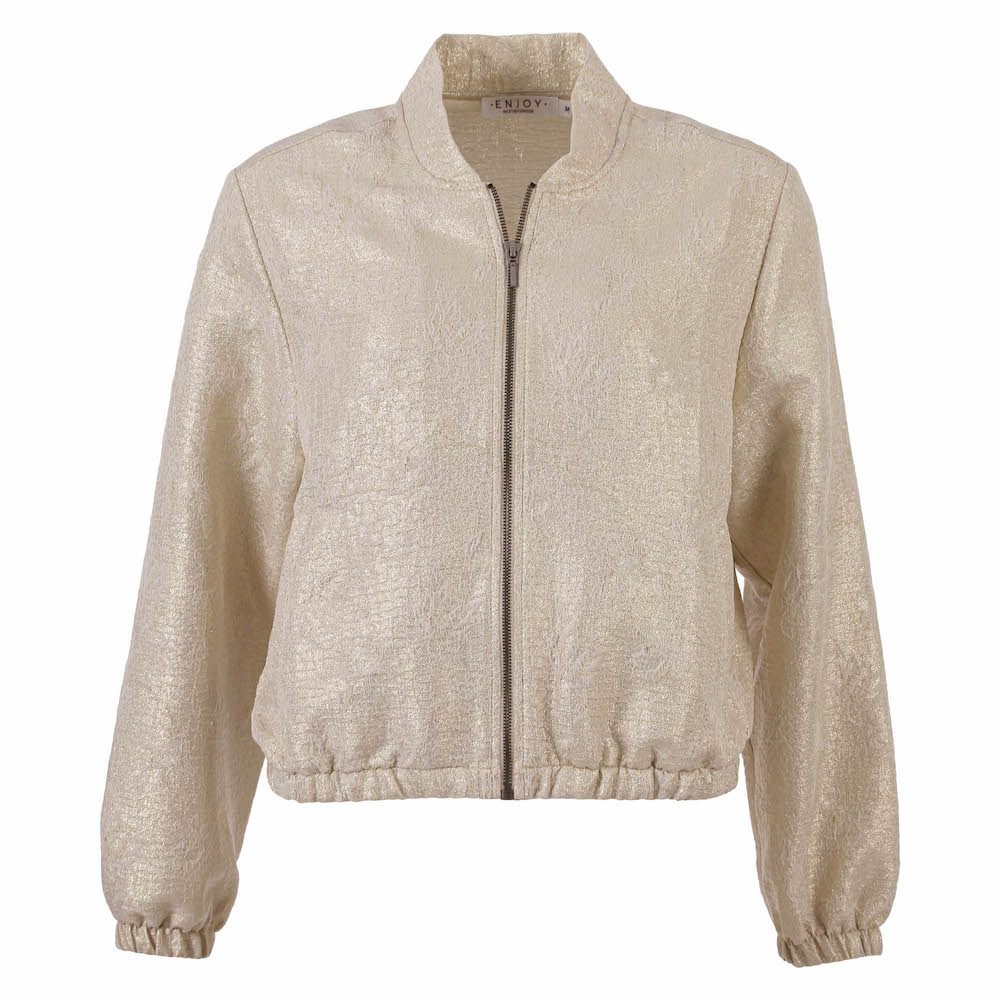 Metallic bomberjacket van Enjoy met lange mouwen, ritssluiting, opstaande kraag, steekzakken en een elastische zoom. Materiaal: Polyester 88%| metaal polyester 8%| elastan 4%