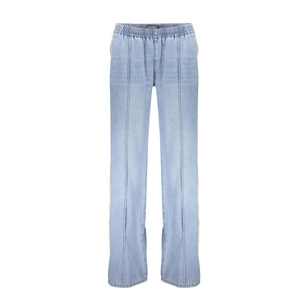Jog jeans van Geisha met wijde pijpen voorzien van bies aan de zijnaden, steekzakken, doorgestikte naad aan de voorzijde en een elastische tailleband. Materiaal: Katoen 83%| polyester 14%| viscose 3%