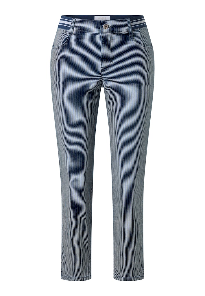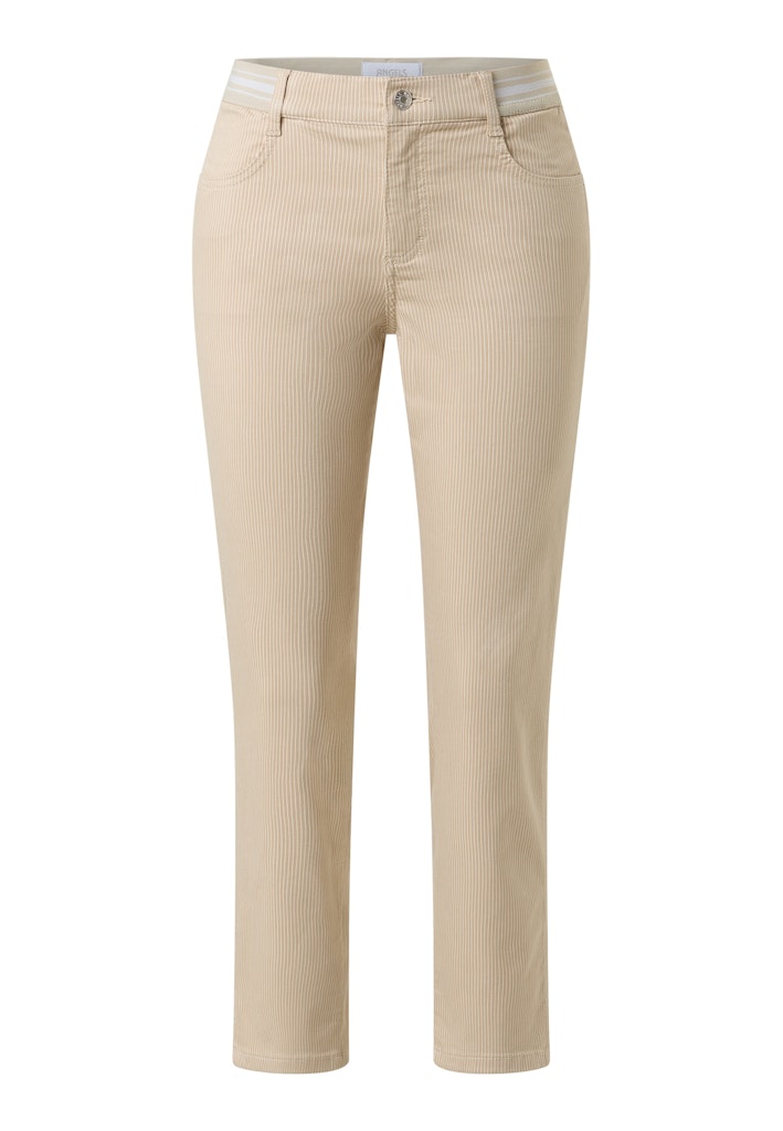 Gestreepte enkellange 4-pocket broek van Angels met een knoop- en ritssluiting en een contrasterende tailleband. Materiaal: Katoen 89%| polyester 8%| elastan 3%