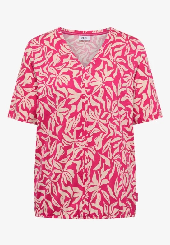 Shirt van Cecil in een bloemmotief met korte mouwen, V-hals, decoratieve stiksels en een elastische zoom. Materiaal: Katoen 50%| modal 50%