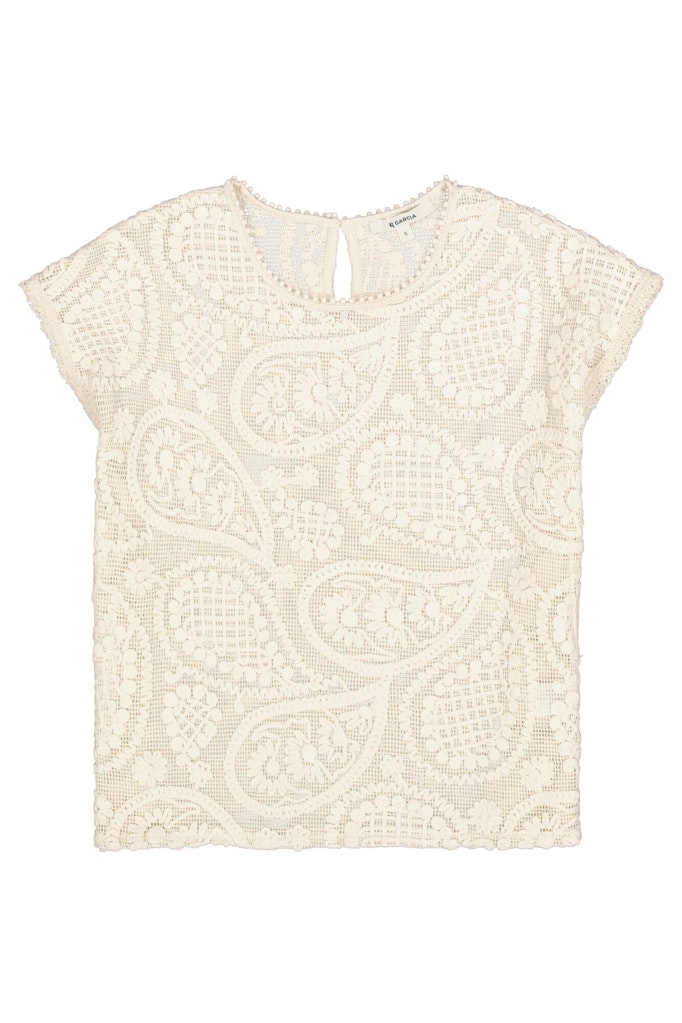 Verfijnd gehaakte top van Garcia met korte aangeknipte mouwen, ronde hals en een keyhole voorzien van knoopsluiting aan de achterzijde. Materiaal: Katoen 100%