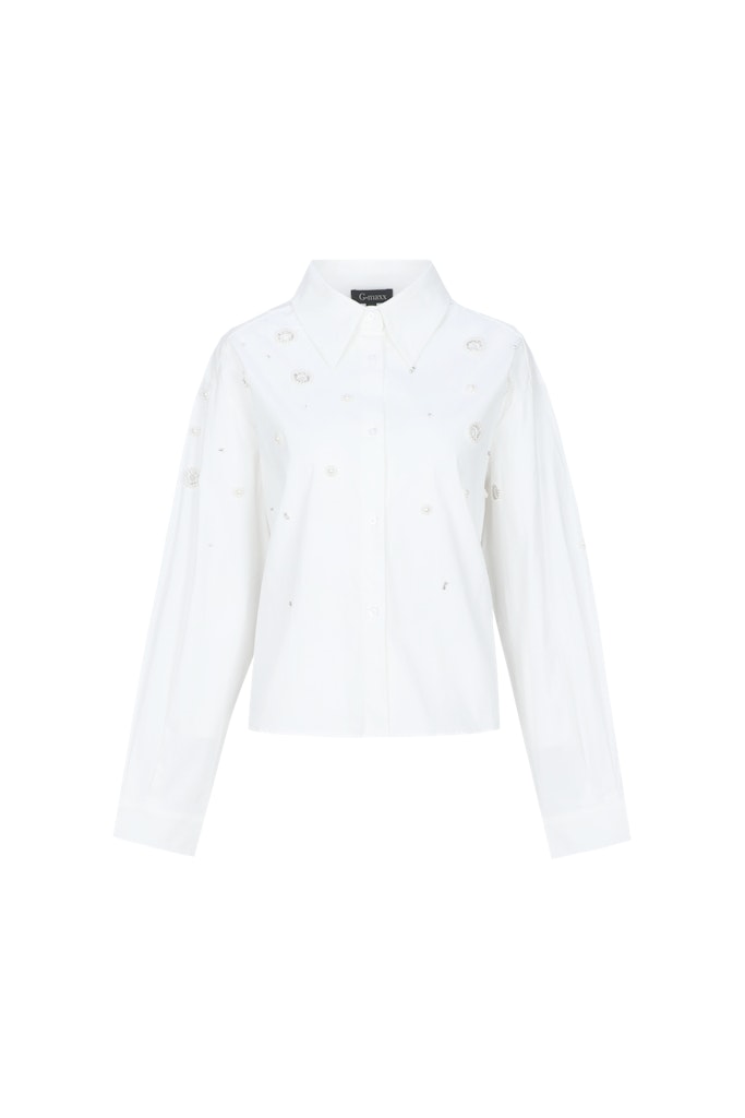 Blouse van G-maxx voorzien van geborduurde details met lange mouwen, kraag en een knoopsluiting. Materiaal: Katoen 97%| elastan 3%